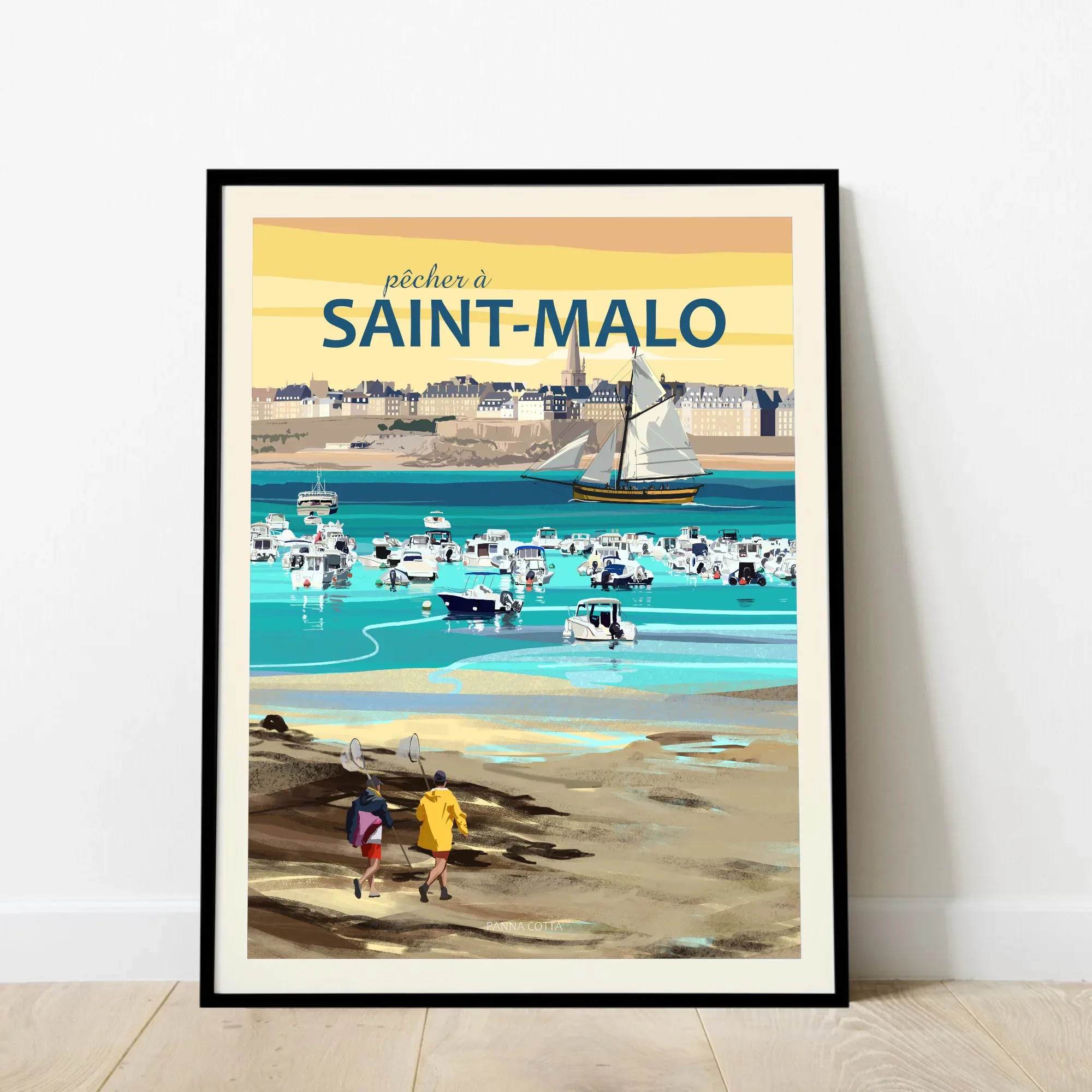 Affiche de Saint-Malo. Pêcher en Grandes Marées