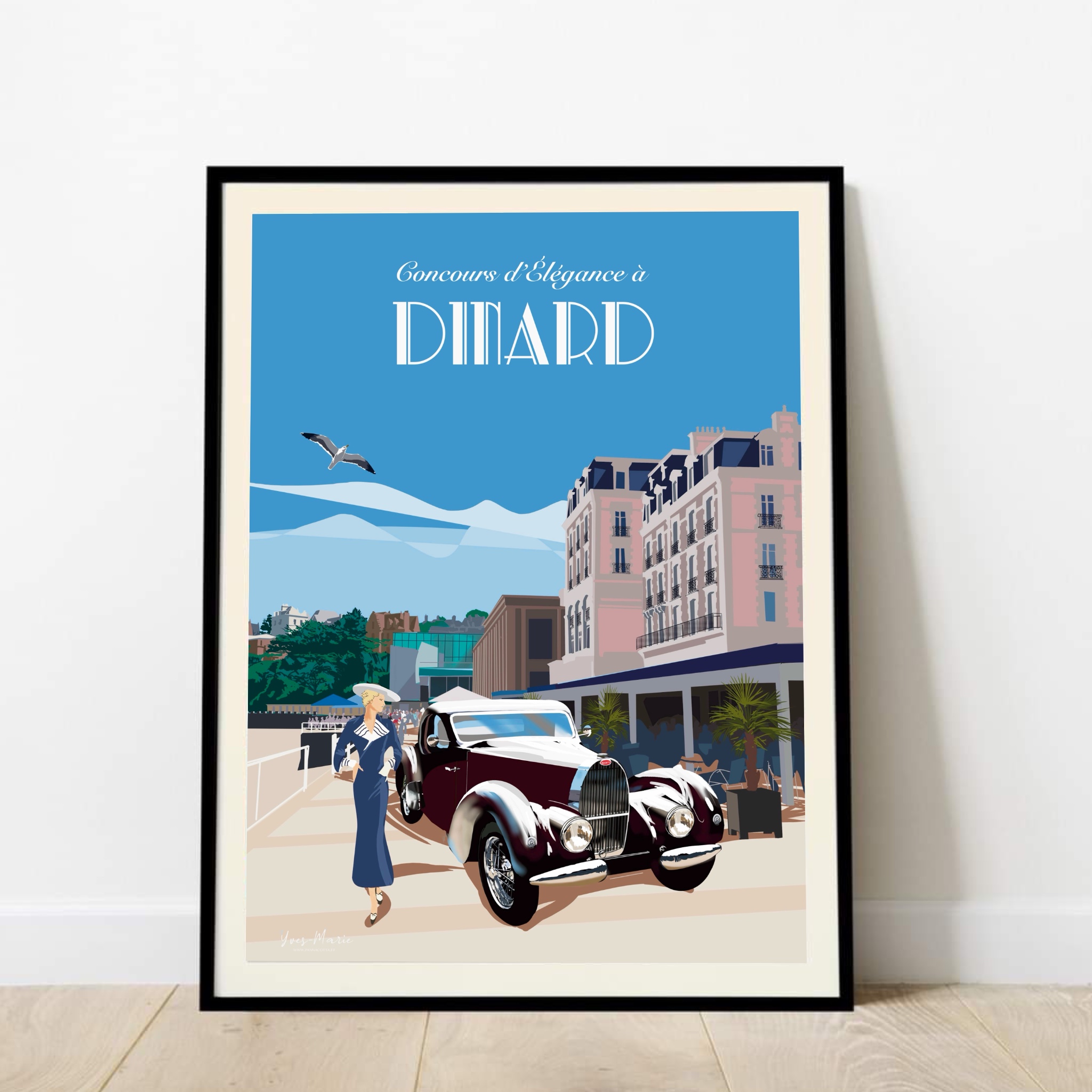Affiche Élégance à Dinard, réalisée avec le visuel officiel créé pour l’affiche du concours Dinard Elégance 2025, quatrième édition de ce concours d’élégance dinardais qui réunit tous les deux ans un fantastique plateau de concurrents internationaux.
